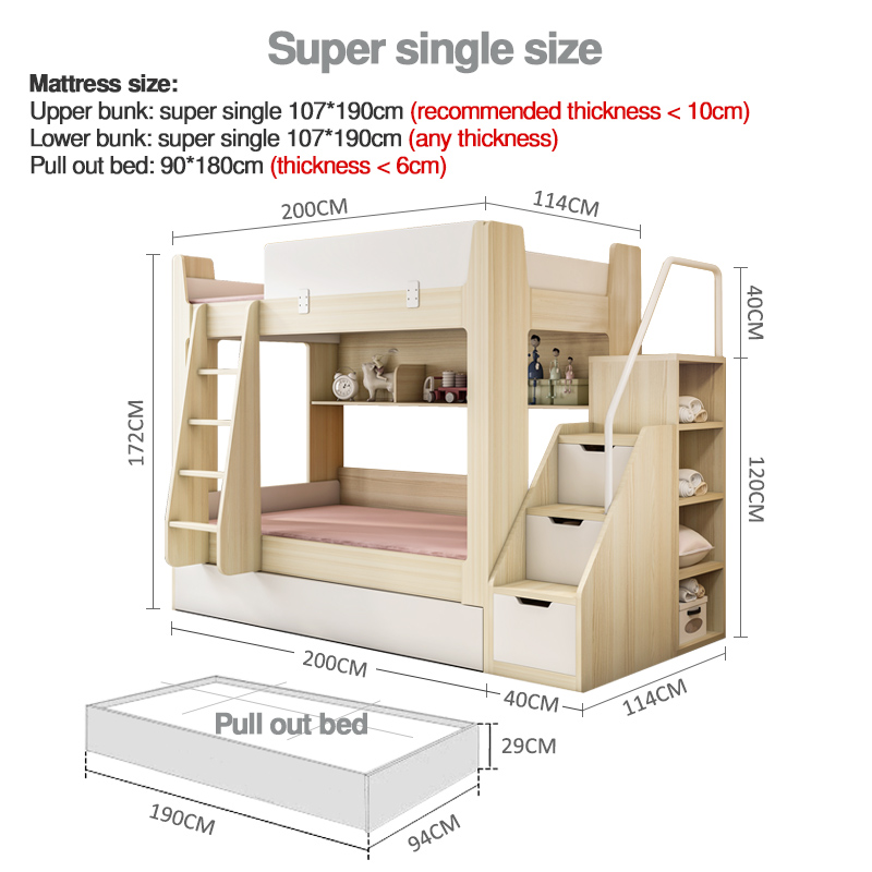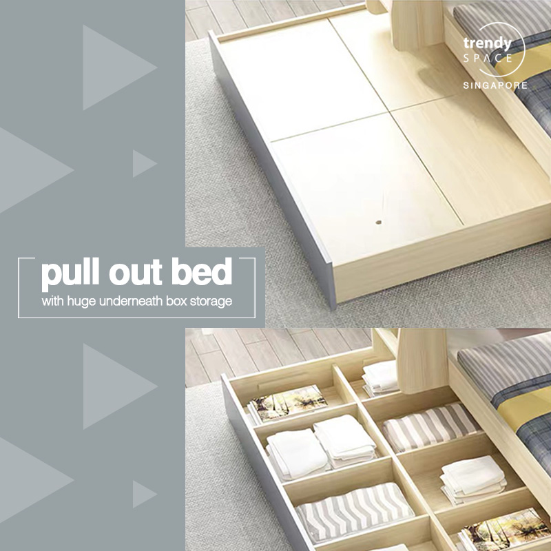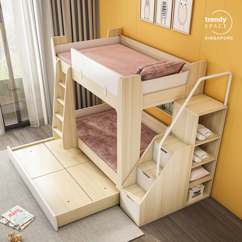 [SG Seller] Children bunk bed with pull out storage bed | Kids bunk bed | Space saving bunk bed | Kids modular bunk bed with storage staircase | TrendySpace