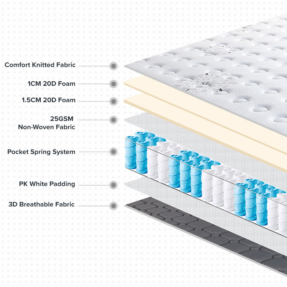 – This mattress has been manufactured under strict quality control and is guaranteed against any defects as a result of normal use within 3 years for Pocket spring from the date of purchase.