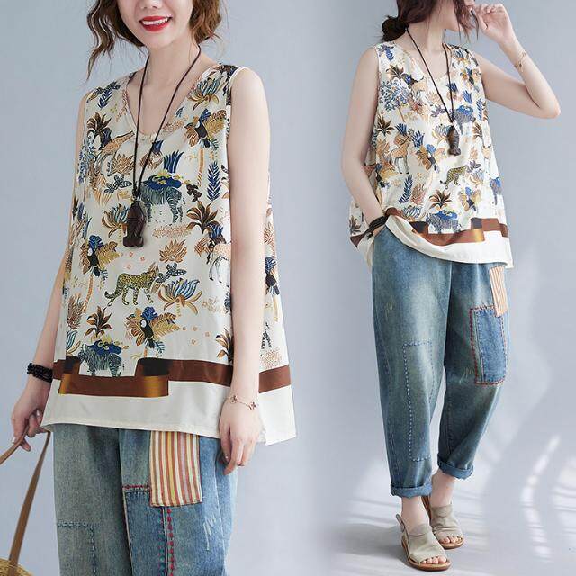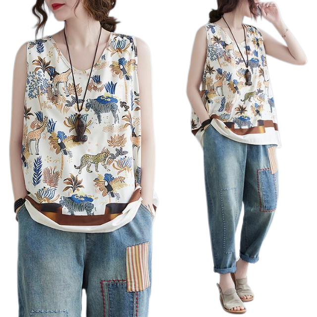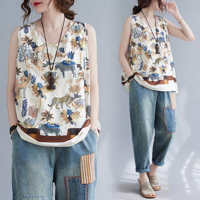 WhiteTime V-neck top female sleeveless vest T-shirt female outside wear large size women's summer vest female summer thin model leggings female 301T0852
