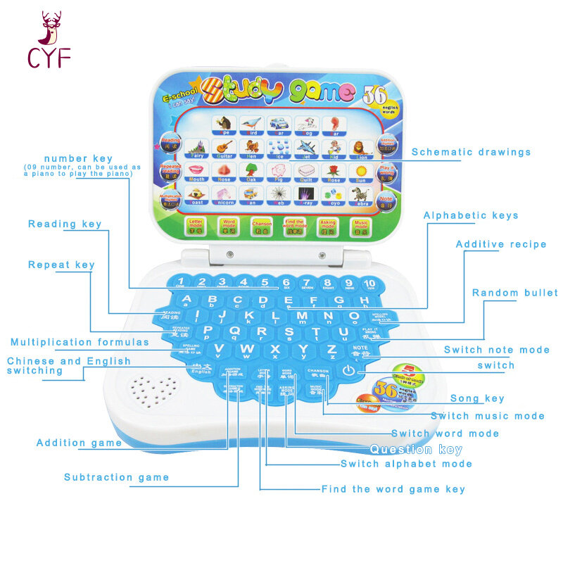 CYF# Laptop Chinese English Learning Computer Toy for Boy Baby Girl Children Kids